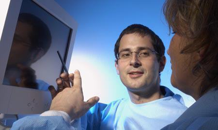 In unserer komplett vernetzten Praxis wird ausschließlich digital geröntgt. Digitale Röntgenbilder erscheinen nicht nur in wenigen Sekunden auf dem Monitor am Behandlungsstuhl, was lange Entwicklungszeiten bzw. damit verbundene Wartezeiten erübrigen läßt, sondern bringen eine Strahlenreduktion von bis zu 90% mit sich. Damit ersparen wir Ihnen, liebe Patienten, eine unnötige Bestrahlung.